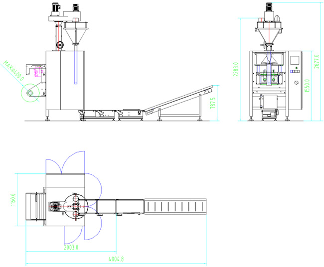 本機與計量配置可自動完成計量、送料、充填制袋、日期打印、充氣(排氣)、成品輸送的全部包裝過程,并自動完成計數(shù)。適用于包裝奶粉、蛋白粉、固體飲料、白砂糖、葡萄糖、咖啡粉等